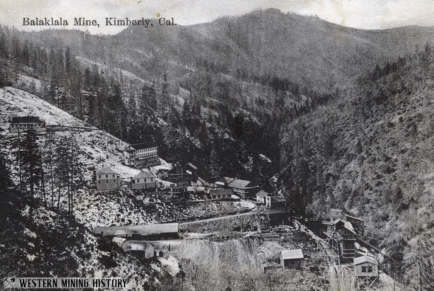 Kimberly was established in 1907 at the Balaklala copper mine to house its workers as well as those employed at the nearby Shasta King mine. It was named after the former president of the Balaklala mining company. The settlement was linked to Coram by a six-mile stage road and by a 4.5-mile aerial tramway that carried copper ore to the Balaklala smelter at Coram.
