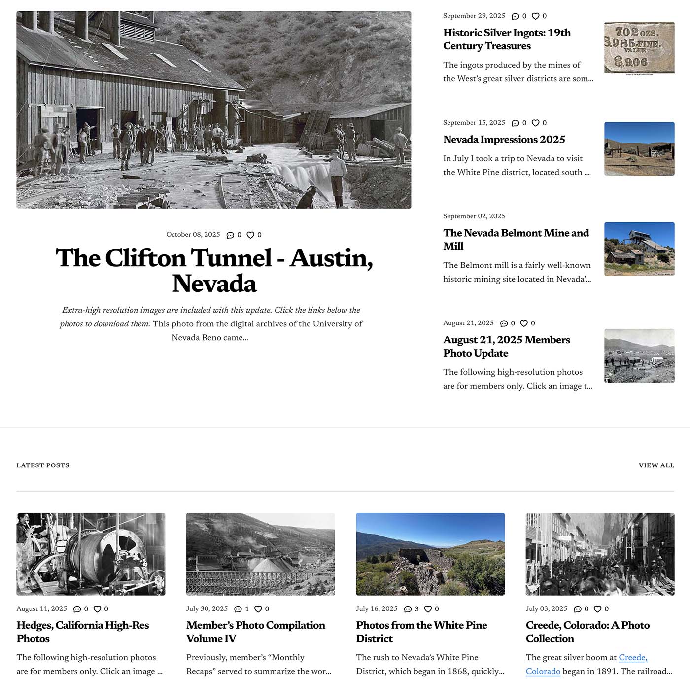 Member content is displayed on the Member’s Only Articles page, the Library page, on the Latest Updates page, and is linked at the bottom of relevant pages like mining towns and state pages.